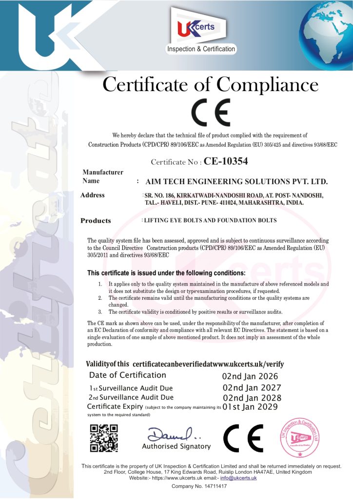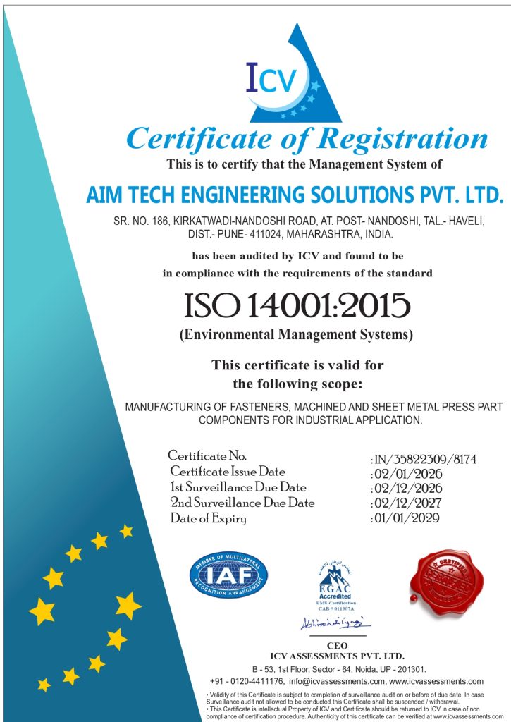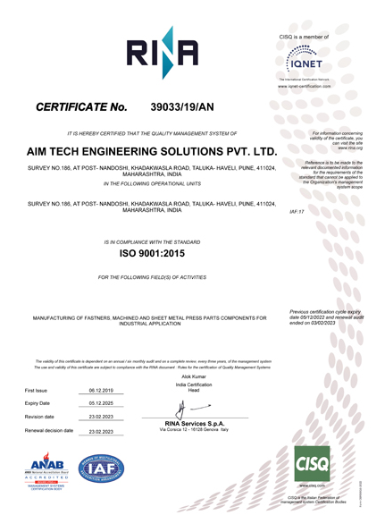 AIM TECH ENGINEERING SOLUTIONS PVT. LTD. is a recognized An ISO 9001:2015 Certified engineering solutions provider company, expertised in manufacturing of the specialized foundation bolt as per customer specification & Drawings, Industrial Fasteners, Forging Components, incorporated with a vision to be known as the leading suppliers in the projects, engineering and infrastructure industry.